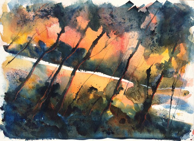 dark clouds gathering over @BlenheimPalace a larger painting based on my last post. Ink and watercolour on #archespaper #thegrandbridge #blenheim #StormHour