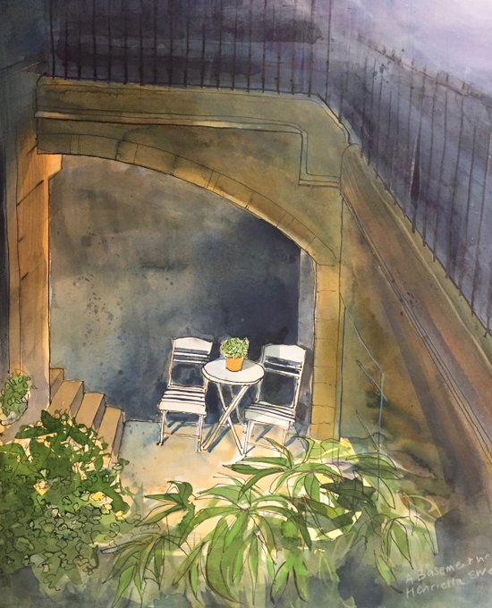 A familiar site in Bath, these small basement gardens. Anyone have a guess exactly where this is? #watercolourpainting #Bath