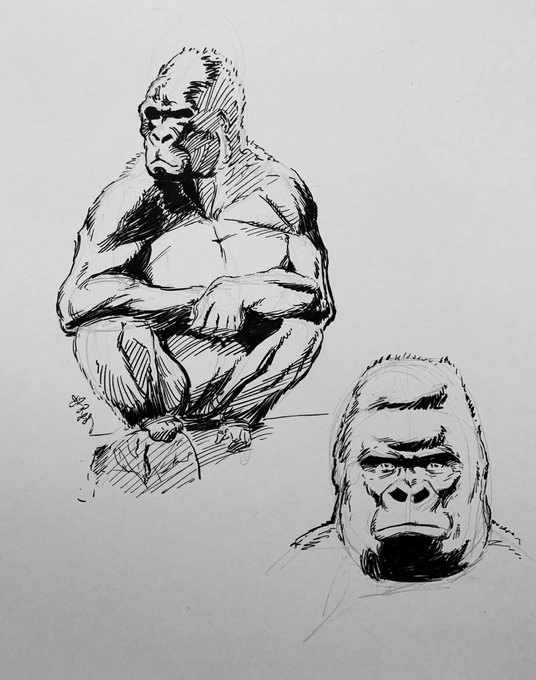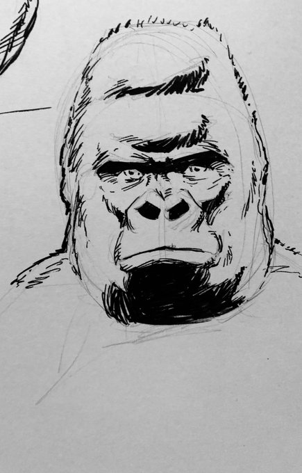 Andy B. Rodriguez Art “Ape” February 2021, line art, pen and ink on Illustration Board, 9x12 in.