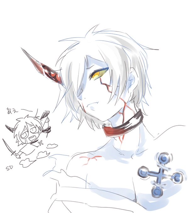 鬼ぃちゃんの生前捏造とうまく顔描けた龍 おでこの角、分けっこしてるの可愛い