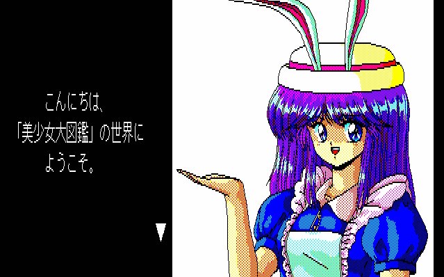 PC98のゲームは二次元の美少女ゲームばかりで、正直うんざりしてしまう。萌絵が多過ぎて狂気すら感じる。下手糞な絵が多い。画像の絵は、髪の横幅大き過ぎて気持ち悪いw 80年代~90年代に少子化を加速させた原因だな。彼女や結婚相手が出来ないから、二次元の美少女に逃避するのは間違っている。