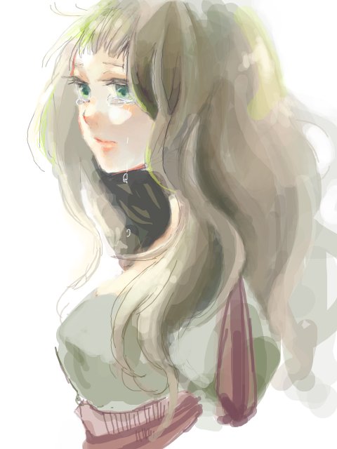 @sousakuTL もふっとした髪のリスみたいな、新緑の森みたいな、感じの女子が描きたかったけど髪質量多いと挫折する…そして途中で飽きる。久々に塗るけどやっぱいい~~この塗り心地。描きこみしたくなる。