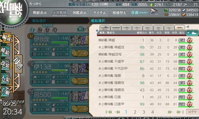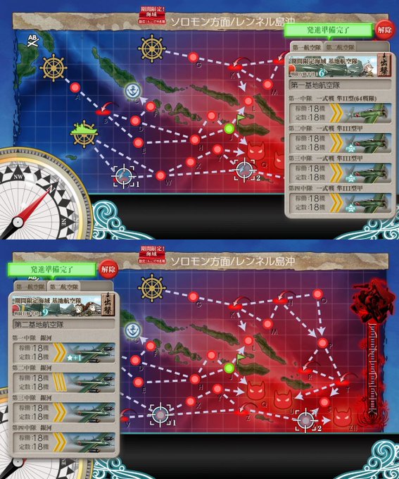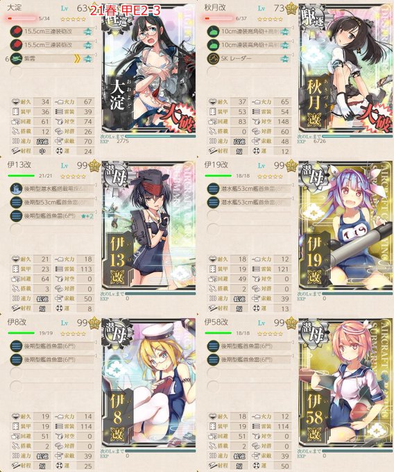 21春 甲E2-3 水上艦混ぜなので基地は道中に振り分け ボスは潜水艦のCI任せ 削りは水上艦にキラ、ラスダンは全艦キラ