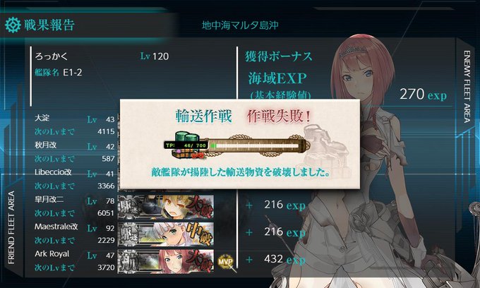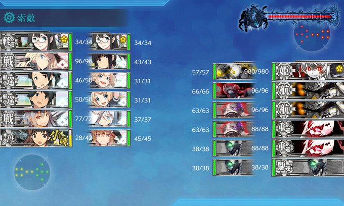 E1-2輸送 壊形態になるのかよ🤮 連撃打てるのが大淀秋月だけで撃ち漏らしちゃった😪