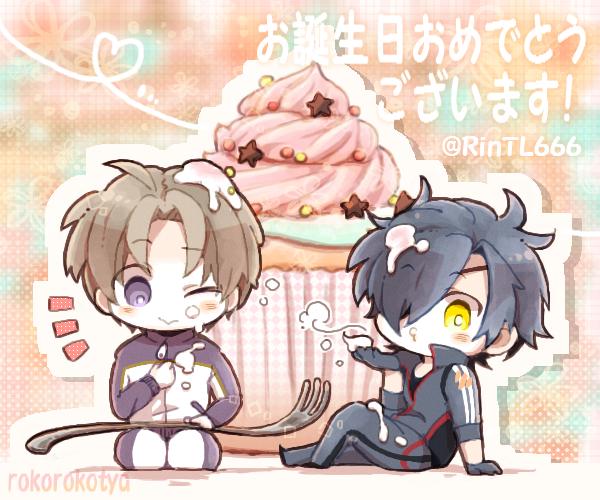 @RinTL666 すごく遅くなりましたが、りんさんあらためてお誕生日おめでとうございますー!描いたあとでカップケーキでめっちゃ申し訳ないなと思いました!デフォルメ好きだと聞いて嬉しくて嬉しくて、光忠サービスセクシーポーズですw