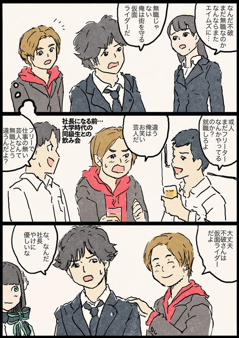 前に描いたゼロワン漫画。 映画でもちょっとだけ無職をいじられていたね不破さん…