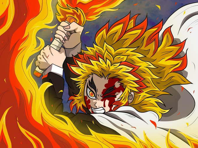 漫画読み終わってないけど、テレビで一挙放送されてからハマってしまい衝動的に描いた煉獄さん。 満足したので寝ます😪!