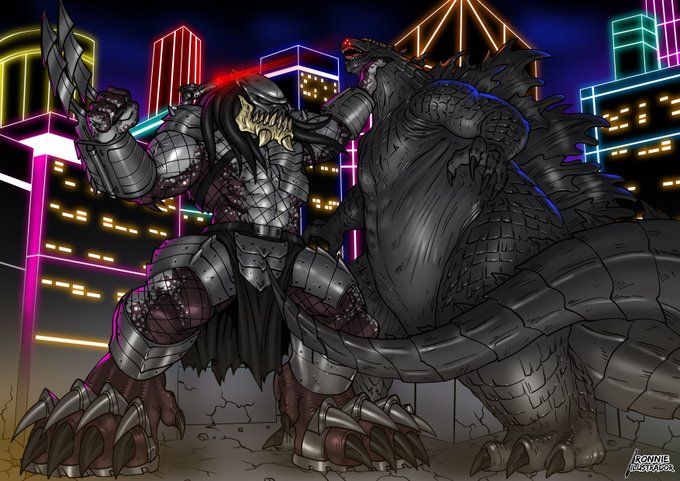 [COMMISSION] Guhra-Kai vs Godzilla #Predator #Yautja #Godzilla #fanart #Commission