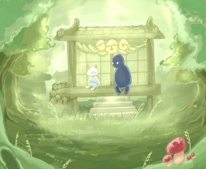 オリジナル 黒雨坊主と白い女の子 #背景版深夜の真剣お絵描き60分一本勝負 #オリジナルイラスト