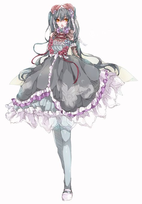 そういやさっきからちょいちょい話をしてるけど。紫の方がツバキ、白い方がアベリアっていいます😊 ふたりまとめてツバアベです。 アベリアの方は衣装色々考えたので描いたりしました。