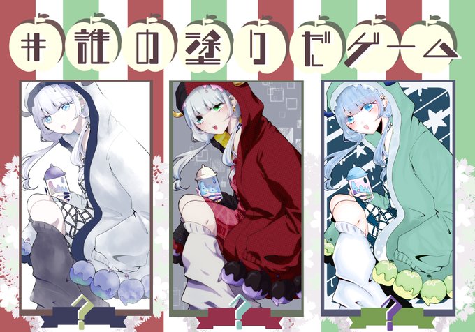 #誰の塗りだゲーム ロゼシガの三人でちいさんの線画に色を塗りました~! どれが誰の塗りかぜひ当ててみてください!😊✨