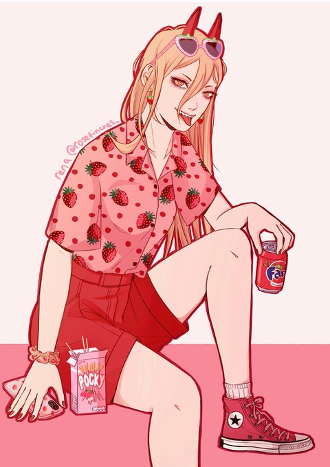 Remember that strawberry outfit art trend? 10 years later I've done it for power 🍓🍓#csm #chainsawman