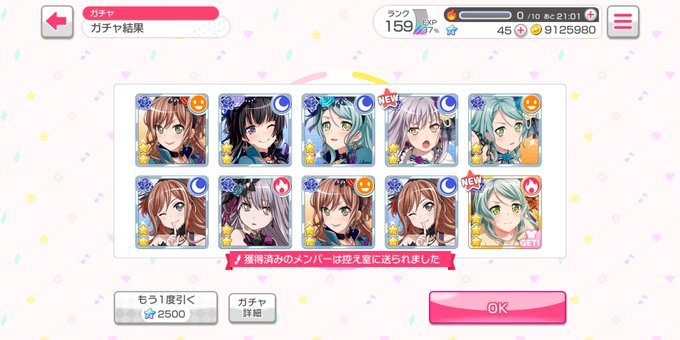 頑張って貯めてよかった~ Roseliaしか出ないガチャは想像以上にテンション上がったヽ(・∀・)ノ ☆3だけど紗夜さん1回で引けたのは強い