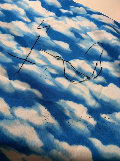 #新しい地図 を空柄生地に手縫いで描きました🥰 今から額に入れたいと思います💕💕