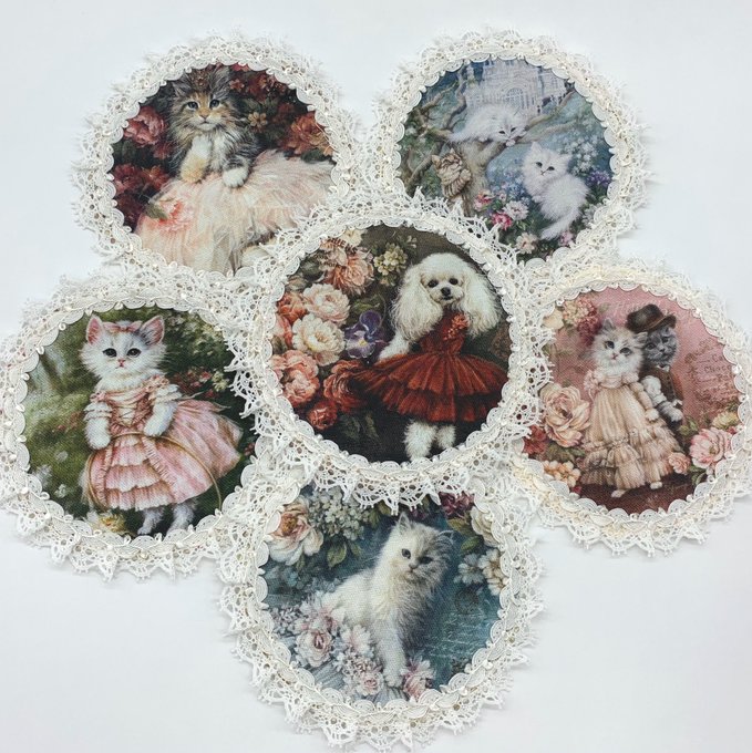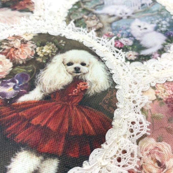 猫🐱と犬🐕の素敵な生地😊 購入してそのままだったけど、やっとこんなマットにしてみました💕 フォトフレームに飾ってもいいかも💐 #ハンドメイド #Rosesmap #布小物