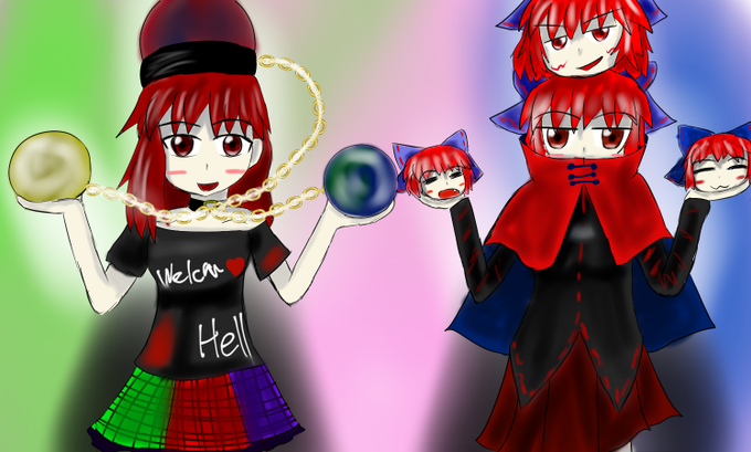 #深夜の真剣お絵描き60分一本勝負 勇儀「…近すぎない?」パル「仕方ないじゃない、短いんだから…」