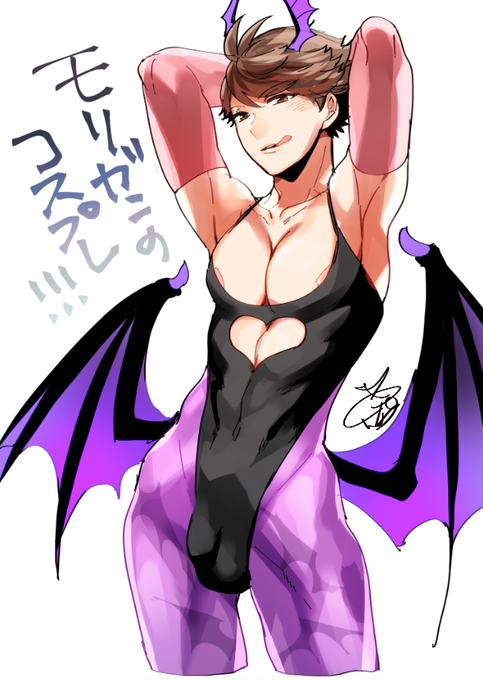モリガンのコスプレをする及川さんを描きました(正座)
