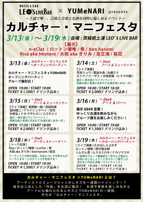 明日からYUMeNARIグループ展 @ 土浦LEO'S BAR!