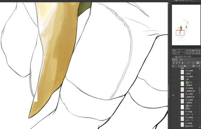 服:いつもの塗用水彩→新規雰囲気水彩(通常)→レイヤー重ねはいつもの塗用水彩。