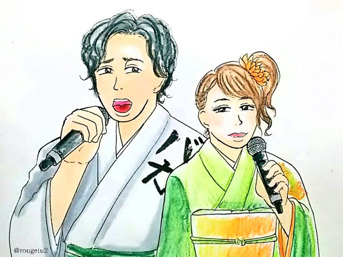 #CUE版深夜の真剣お絵かき60分1本勝負 ふたりで演歌デュエットの曲出さないかな…大遅刻ですがお納めくださいませm(__)m