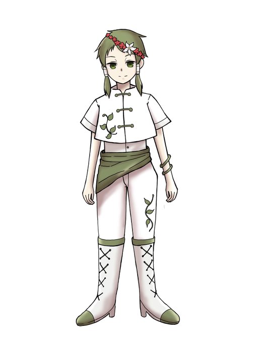 緑風の1周年衣装 髪飾りはジェイドさんの花をイメージしたもの 服の刺繍は蔦 蔦の花言葉は【永遠の愛】