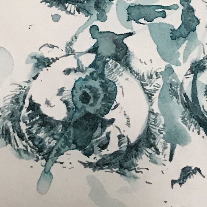 シトラスブラック。水筆で黄色だけ溶けてるのかな。 #万年筆イラスト部 #古典インク