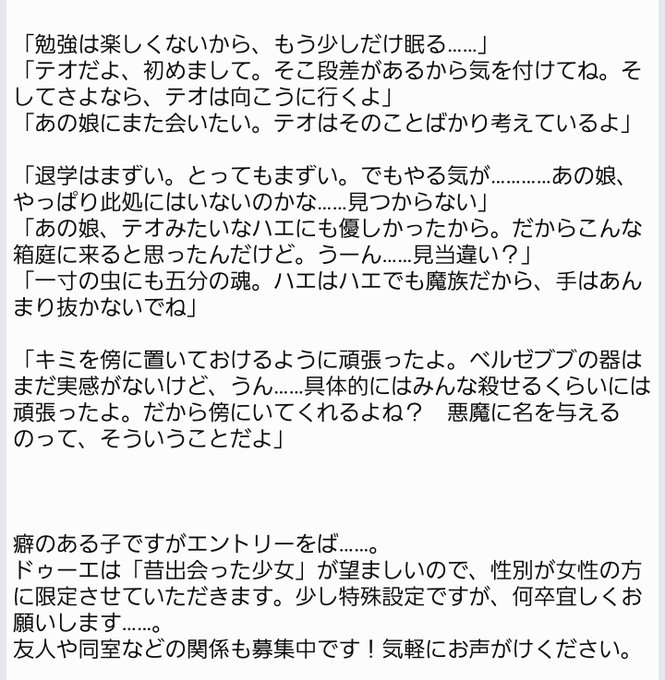 将来ベルゼブブになるハエの魔族です!ドゥーエの条件が少し特殊ですが何卒宜しくお願いします #ドゥーエの灯火_CS
