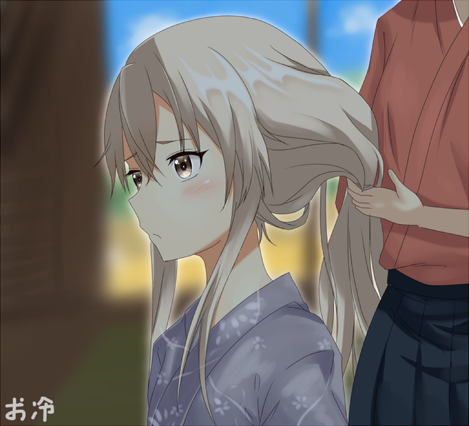 秋祭りに行くために渋々着付けをしてもらう島風 #艦これ版深夜の真剣お絵描き60分一本勝負 #艦これ版真剣お絵描き60分一本勝負_20150920