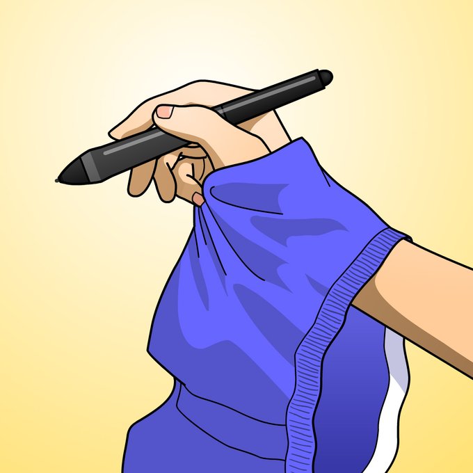 ペンを持つ手の側面が液タブに密着し、滑りが悪くて描きづらかったので、トランクスを手に巻いて描くとちょうど良い滑りになりました。