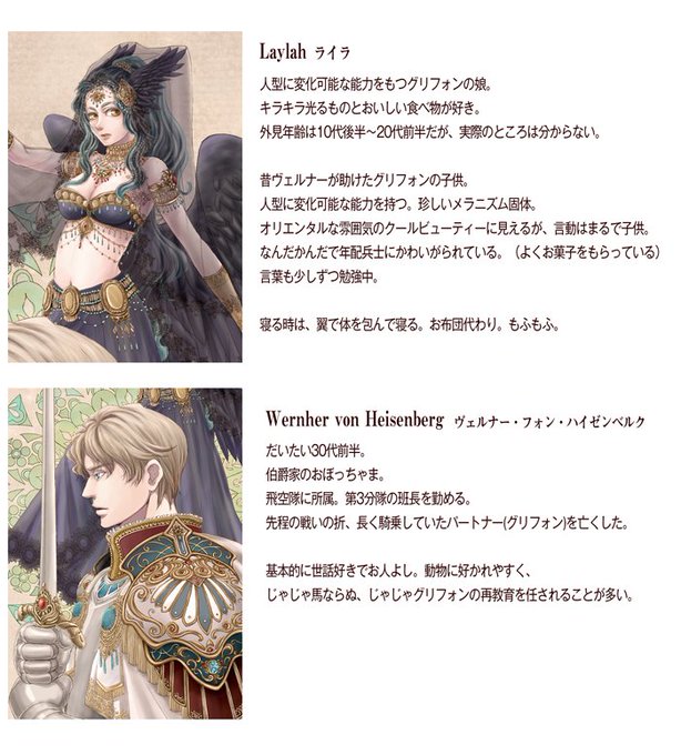 この辺…がそうかな。グリフォン形態が本来の姿。普段はなんかいい感じの力で人型になってるって感じで。これもすでに数年前とかですけど。あと、ねむねむライラはお気に入りなのでそのうちちゃんと描きたい次第。これで回答になっているだろうか…