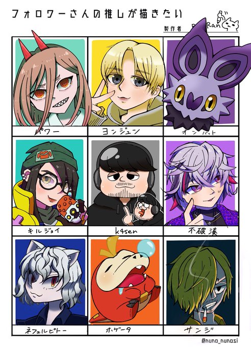 #フォロワーさんの推しが描きたい ずっと昔のリクエスト完成しました、4キャラくらい自分の推し描いてカサ増ししてます。難しかったです🤨🤨