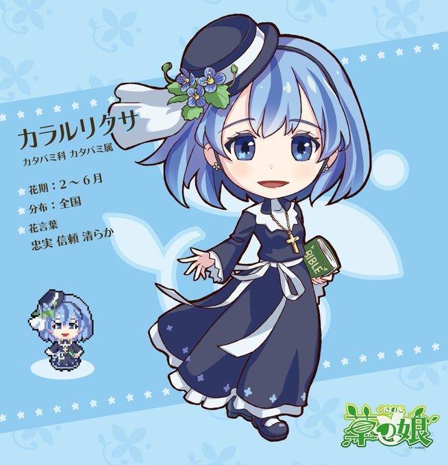 ノビル、カタバミ、オオイヌノフグリ(ルリカラクサ)、ツユクサ 最近8bitが好きなのでドット絵も添えてみました #野草 #擬人化