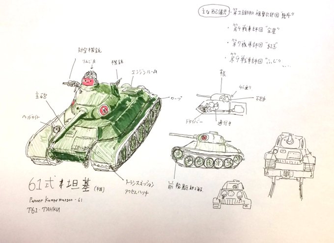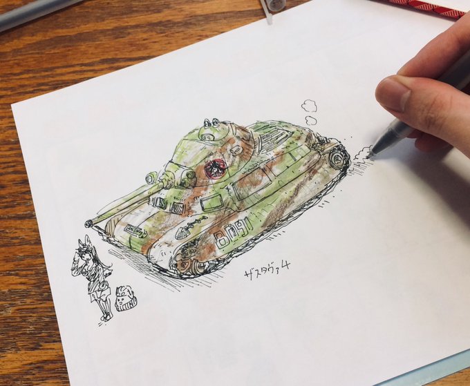 オリジナル戦車のザスタヴァシリーズ。 最初はソミュアっぽい感じにしたけど、対戦車戦を意識すると(ザスタヴァ4)、T34っぽくなった気がする。 #架空戦車 #ボールペン画 #ペン画 #コピック