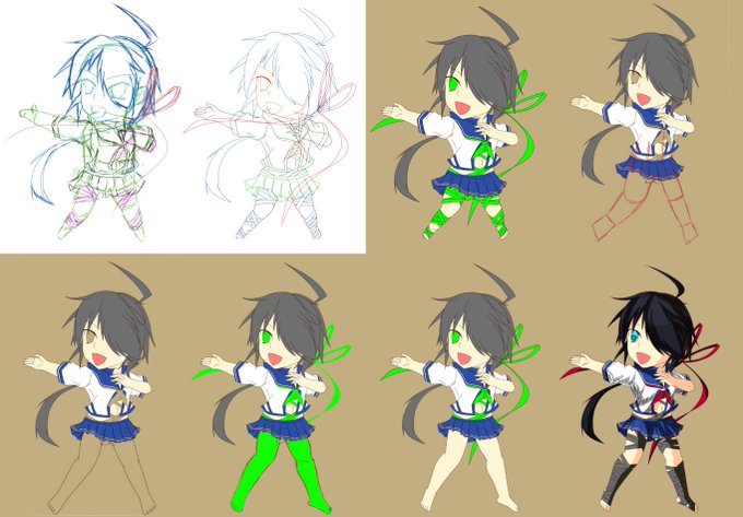 艦装作画中 ペン入れレイヤーでやると直線ひきやすいわ。細かい修正もできる分、ついつい手間をかけてしまいがちになるかな