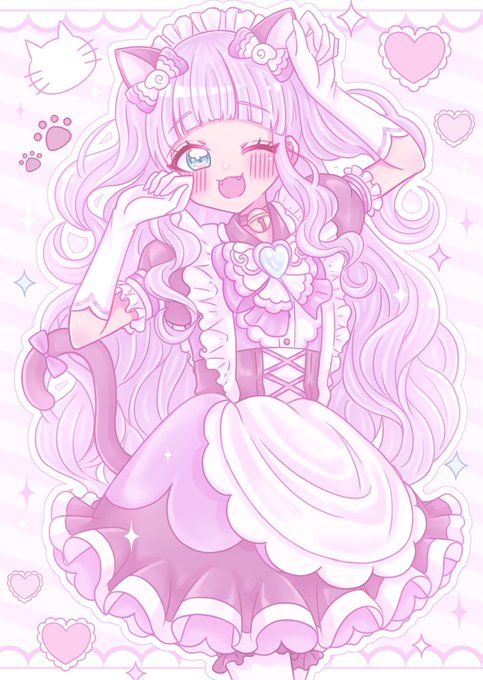 猫耳メイド成長エルちゃん💜💗🐈⬛ #precure #ひろプリ