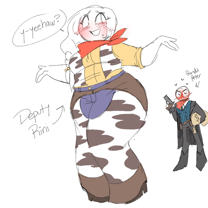 Haha I was asked to draw my Y/N sona Rini as a cowgirl on tumblr, and now I made a Western AU with #YourBoyfriendGame . Y/N would be Deputy, Don is Sheriff, TK is Saloon Bartender, Lucy is Saloon Girl, and Peter is bandit disguised as townsfolk! #YourBoyfriendfanart