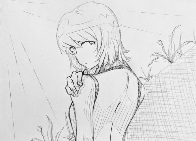 肩に手を添えるイメージから、日差しを受けて影が出来て、影が地面に見えて来たので雑草生やした楽描き。(;^ω^)これが自分の楽描きスタイルかも?