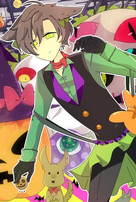 掲載許可をいただきましたので友人に依頼しました、ブロマイドです。秋ノ実さんより、ハロウィンにて林檎ちゃん、モノしゅがーを担当してくださいました!