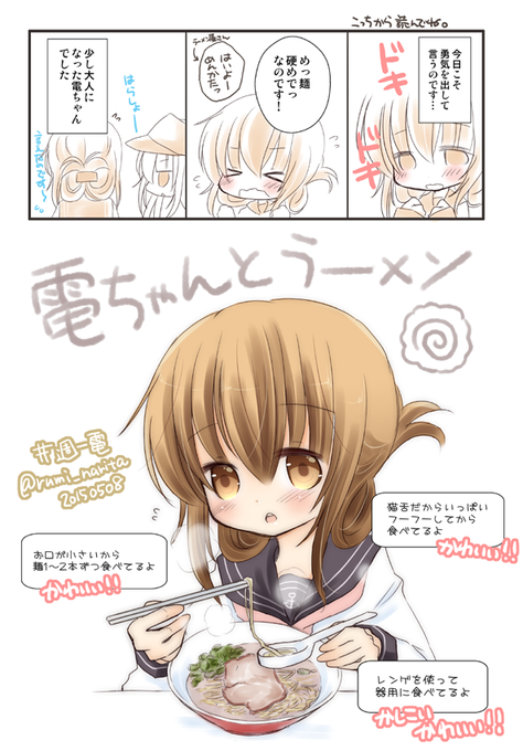 電ちゃんとラーメン。ラーメン食べたいなーと思ってたら電ちゃんのラーメン食べるとこかわいい!となりまして(なんでも可愛い)若干アレ気味な内容です #週一電