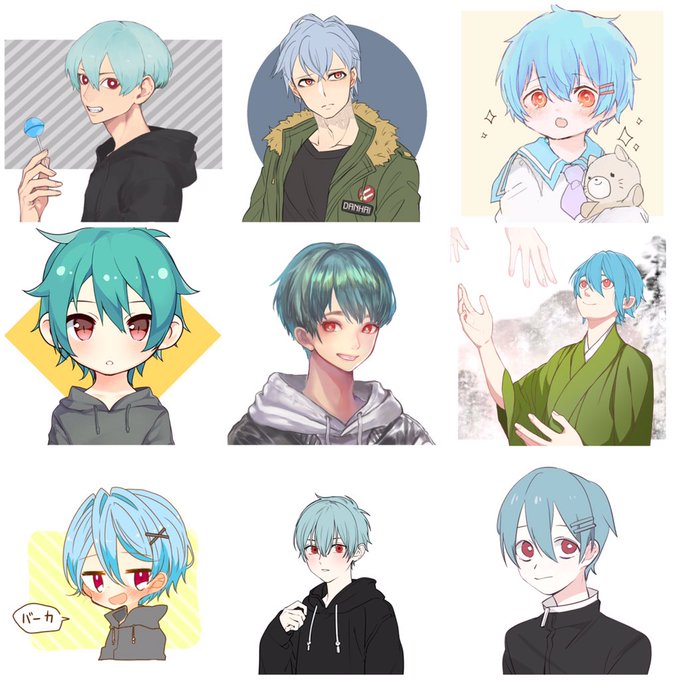 @02Rainy_Candy02 参加しつれいします! 推しは青髪、赤ピンクの目、黄色とオレンジのピン、黒パーカーでお願いします😭