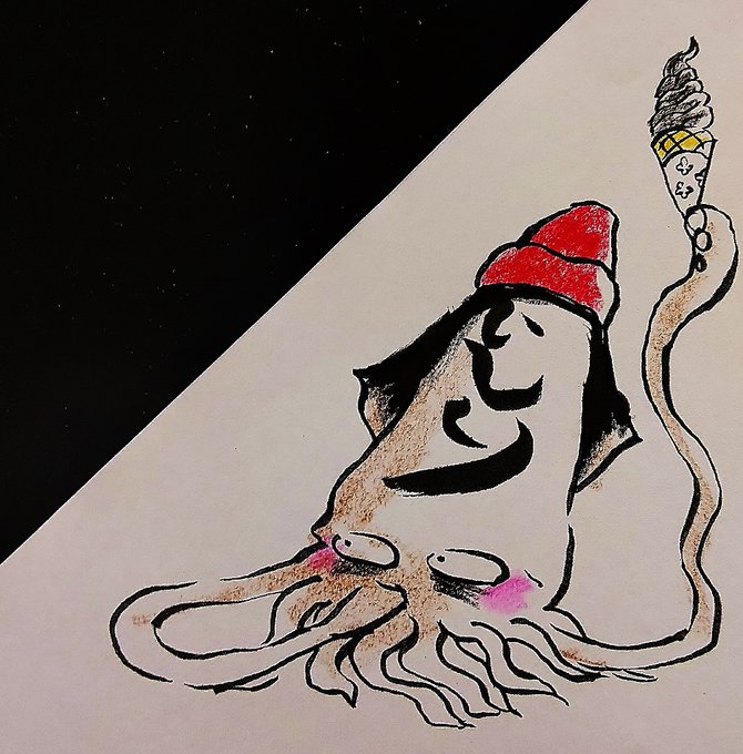 さらなるボツ絵公開供養は…まさかの総天然色!そしてラストの1枚はこの世に一つだけのイカシングルバージョン!(色々と意味不明かと思いますが自分の作品が発売されるので盛り上がって自分を見失っておるるるるる) #イラスト #イカす丸 #総天然色 #イカの駅 #つくモール #カネイシ #いしり #供養