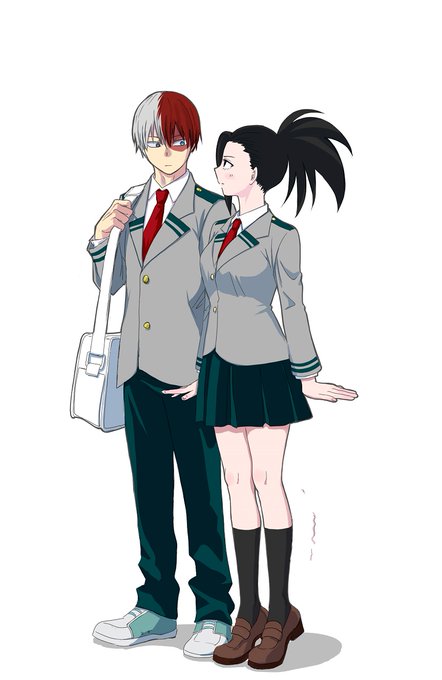 夏の思い出 なぜか制服でキャンプファイヤーな轟君とヤオモモさん。 #轟百