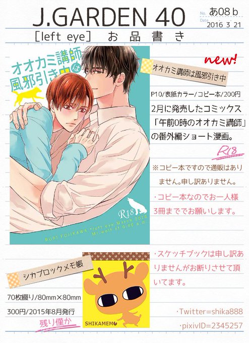 本日のお品書きです。コピー本新刊有り。