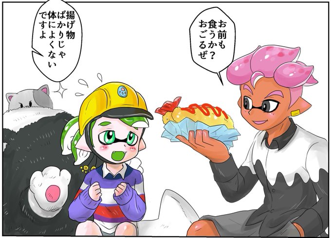 @Pikachee 様のゴウ様とるりさんの交流いただいて掲載許可まで頂いたので...! るりさんのポーズといいしょたみが強くてよいのとゴウ様の揚げ物掲げるポーズが様になってるのが好きです...