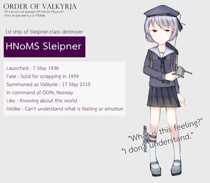 [Valkyrie test type] 1st Sleipner-class destroyer "HNoMS Sleipner" #OrderOfValkyrja #艦艇擬人化