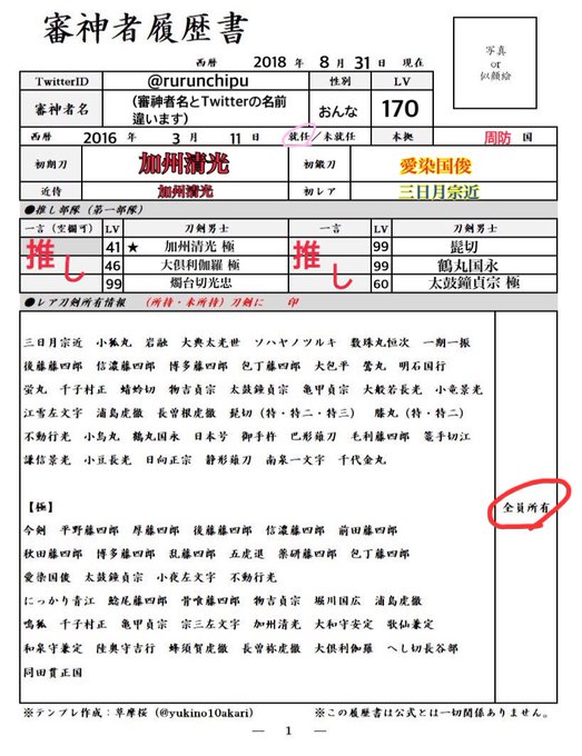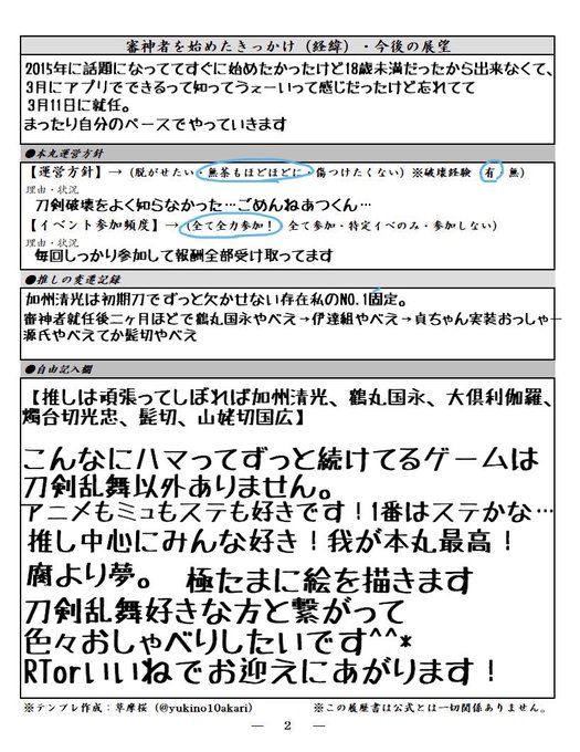 #審神者履歴書