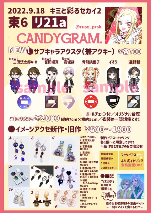 9/18 キミと彩るセカイ2【東6リ21a 】のお品書きです♪