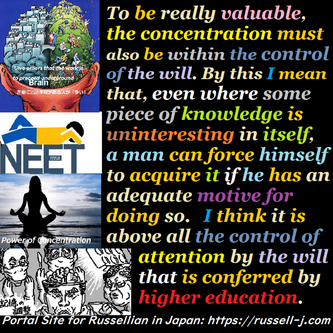 To be really valuable, the concentration must also be within the control of the will. By this I mean that, even where some piece of knowledge is uninteresting in itself, a man can force himself to acquire it if
