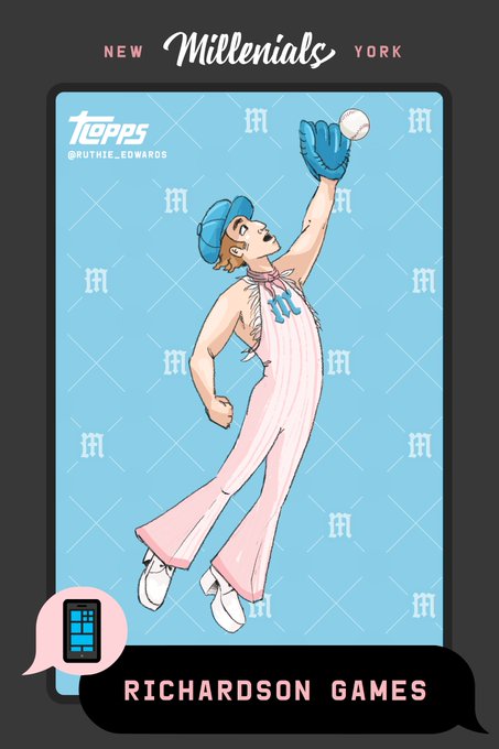 I am honored to announce I have designed my first Tlopps Blaseball card and it's for the best @blaseball team in the league, the @nymillenials 📱