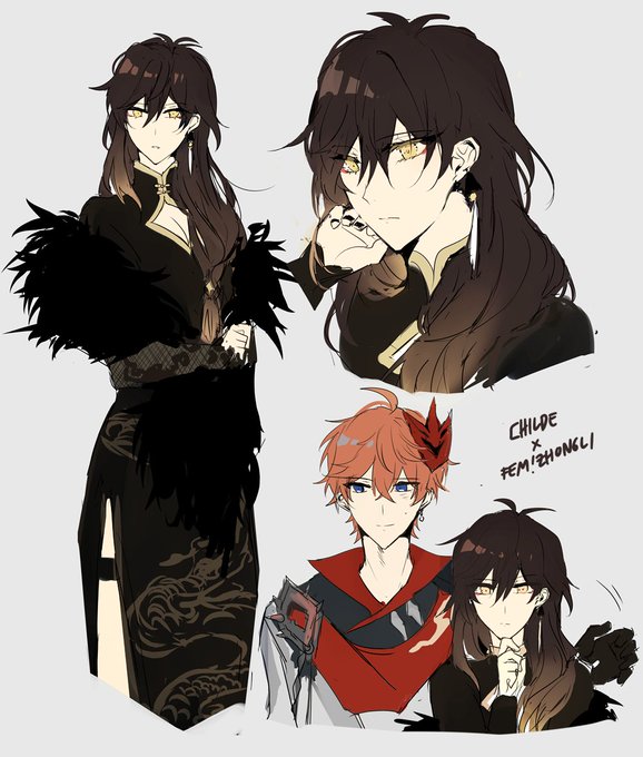 female form rex lapis/zhongli + childe 💧🔶